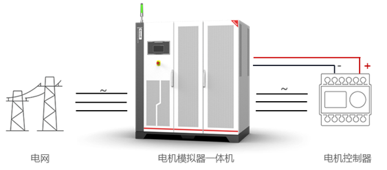 针对电控下线测试,电机模拟器一体机具备两路输出通道,直流输出支持磷酸铁锂、三元锂等动力电池模拟功能,交流输出支持电机模拟及故障注入等功能,替代电驱台架系统中的电机及其机械负载,以满足不同规格驱动电机控制器的快速下线。